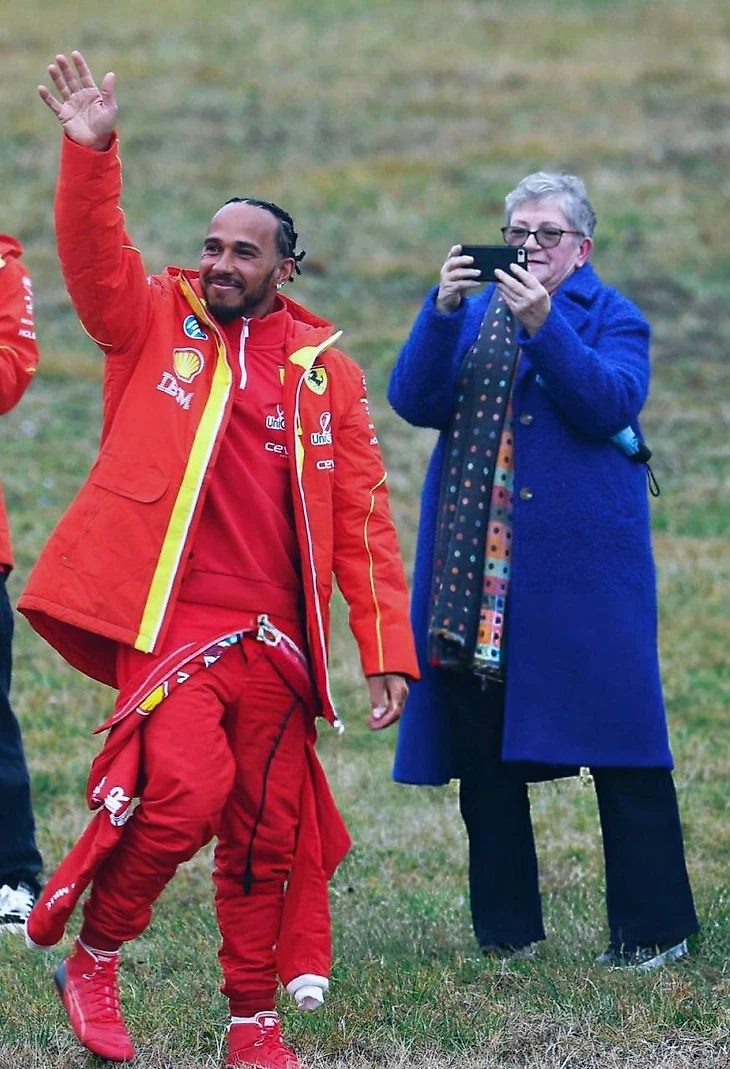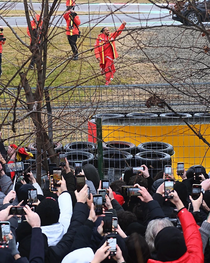 В итоге собралось около 2 тысяч фанатов, и все дождались – есть заснятый исторический первый круг Льюиса в алом болиде!