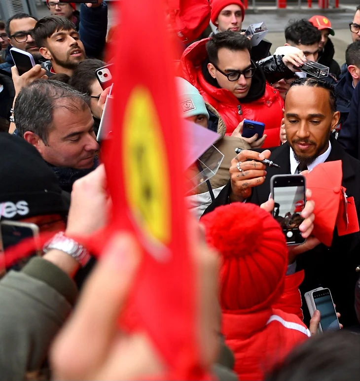 Всё началось утром 20 января, когда семикратный чемпион мира прибыл в штаб-квартиру Феррари, которая находится в Маранелло. Пришёл Хэмилтон в стильном костюме с галстуком (не часто у него можно увидеть такой лук).