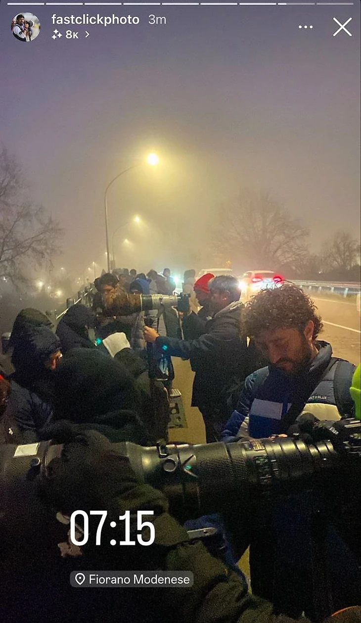 Ну вот и 22 января 2025 года, потенциально день начало Эпохи. В 7 утра возле трассы стало ещё больше народа. Тифози готовы были встречать своего нового героя, а фотографы хотели запечатлеть столь значимый момент в истории Формулы-1.