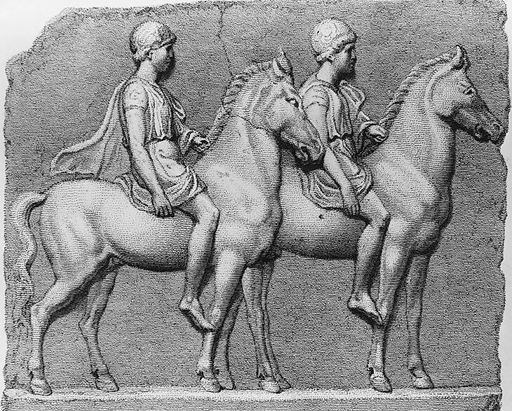Кастора и Полидевка считали покровителями лошадей, всадников, наездников и возничих. С дельфинами гонки связывает Посейдон (у римлян – Нептун), который был не только богом моря, но и коневодства.