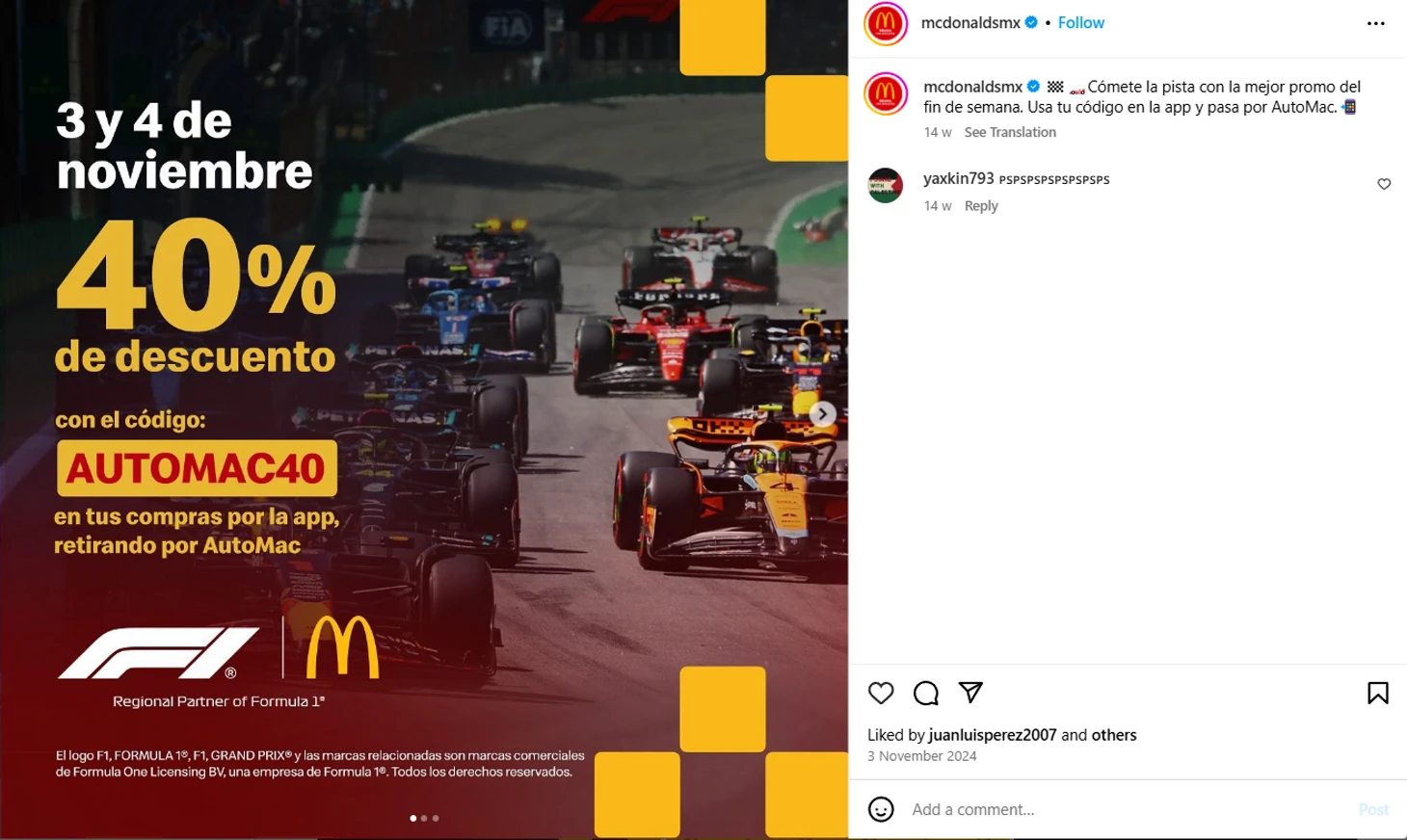 Например, особенно ярко на фоне (временного?) ухода Серхио Переса на шоукар «Ред Булл» вспыхнули сделки с латиноамериканскими ветками Nestle и McDonalds. Первоначально они пришли в Гран-при именно как часть персонального партнерского пакета №11, но к концу 2024-го по мере усиления слухов о разрыве обе компании подписались со всей «Ф-1».