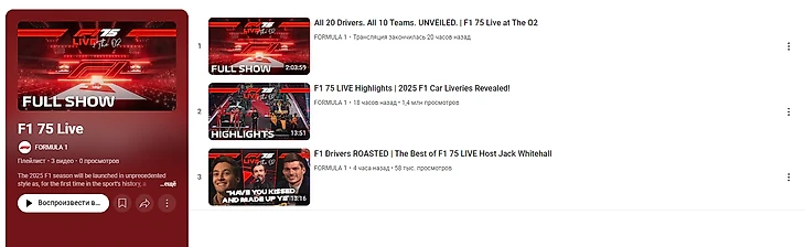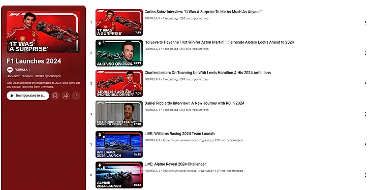 И это действительно рывок по сравнению с предыдущими презентациями. Для сравнения, вот данные официального ютуб-канала «Ф-1» и количество просмотров видео с презентации 2024 года: