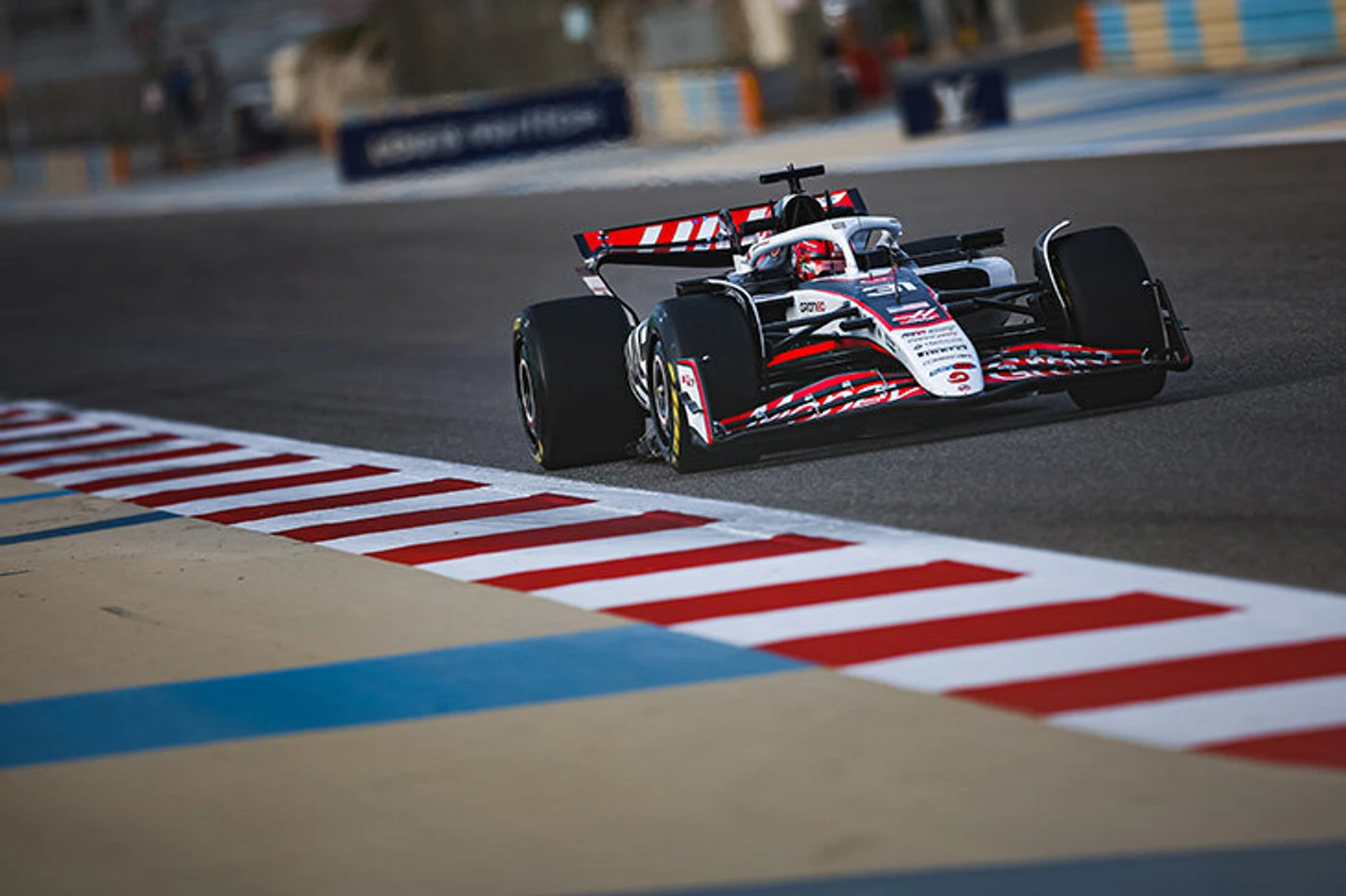 Крупный и смелый логотип «Хааса» – это инверсия прошлогоднего варианта, теперь он еще больше выделяется на фоне остальных элементов ливреи. Тонкие красные полосы подкрепляют образ с точки зрения его узнаваемости и в конечном счете целостности.