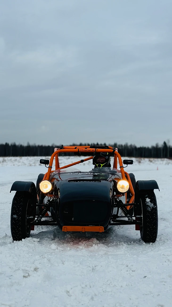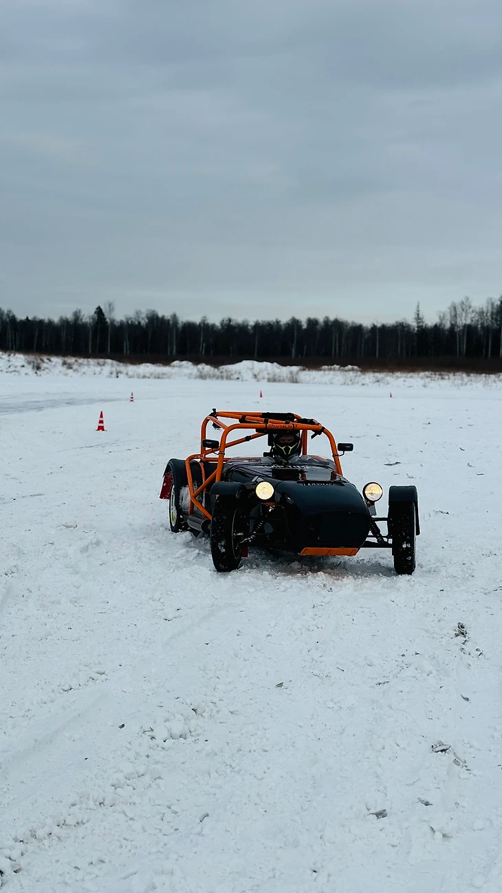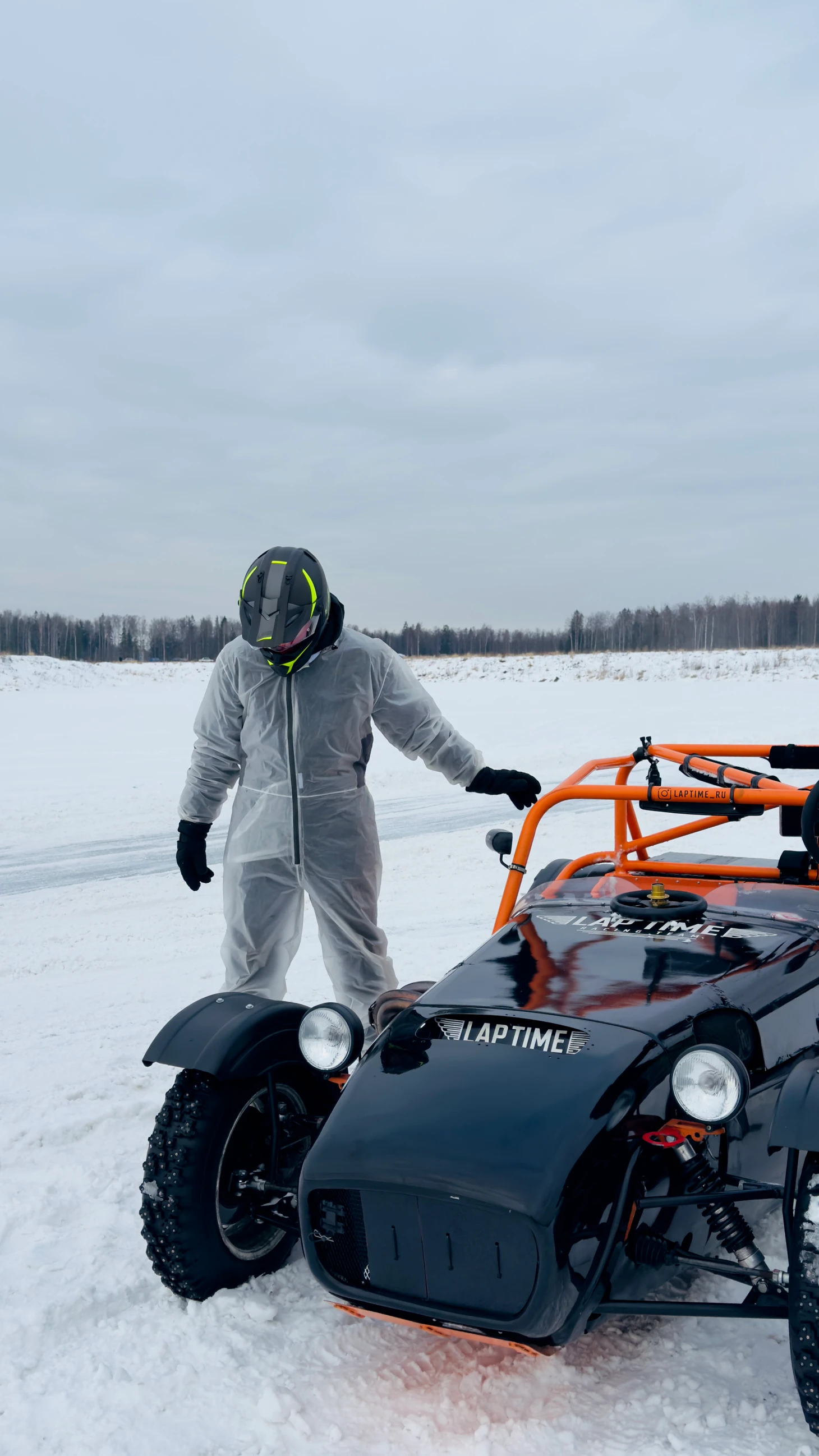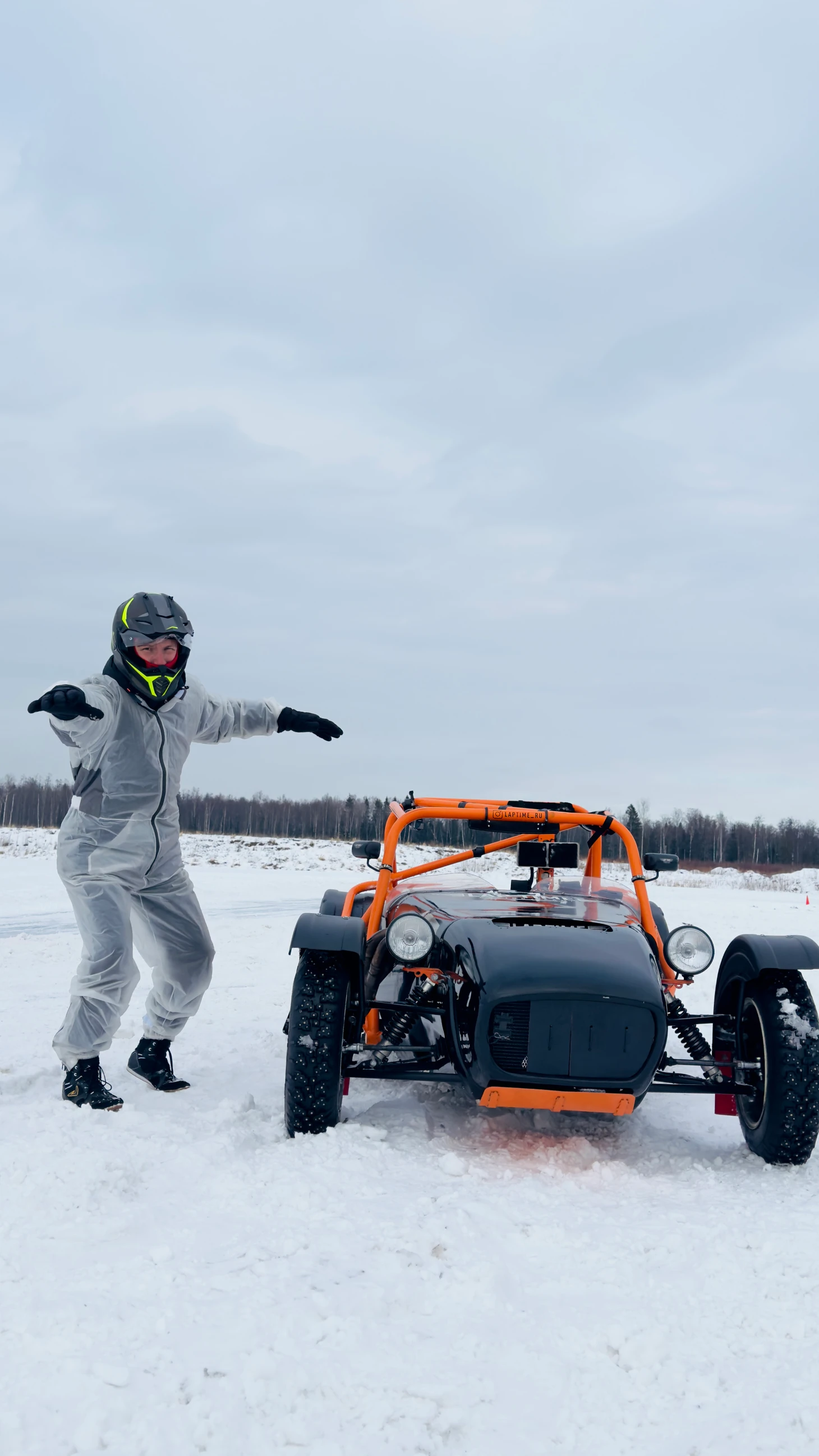 В Ленинградской области февраль не балует в 2025 году морозом, но все-таки водоемы промерзли, лед достиг глубины промерзания в 20-25 см. Shortcut весит 500 кг. Установлены шины с тренировочным шипом, который позволяет болиду «держать» ледовую трассу значительно лучше, нежели это делает стандартная резина. Во время заезда это позволило колесам болида стать «профессиональными коньками».