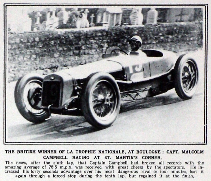 Принимал Кэмпбелл участие и в заездах на побитие мировых рекордов скорости на автомобиле. От таблицы рекордов тех лет пестрит в глазах: с 1922 по 1939 годы к ней добавились 23 новых строчки, а сам рекорд за это время вырос в три раза – с 200 до 595 км/ч. Большинство рекордов того времени не продержались и года, а некоторые оставались таковыми всего несколько дней: например, Рене Тома, разогнавшийся 6 июля 1924 года до 231 км/ч, пробыл в статусе быстрейшего гонщика планеты меньше недели.