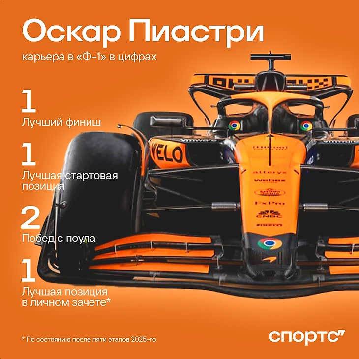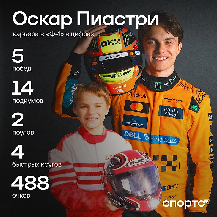 На счету у Оскара Пиастри 5 побед, 14 подиумов, два поула и победа в Кубке конструкторов в 2024-м с «Маклареном».