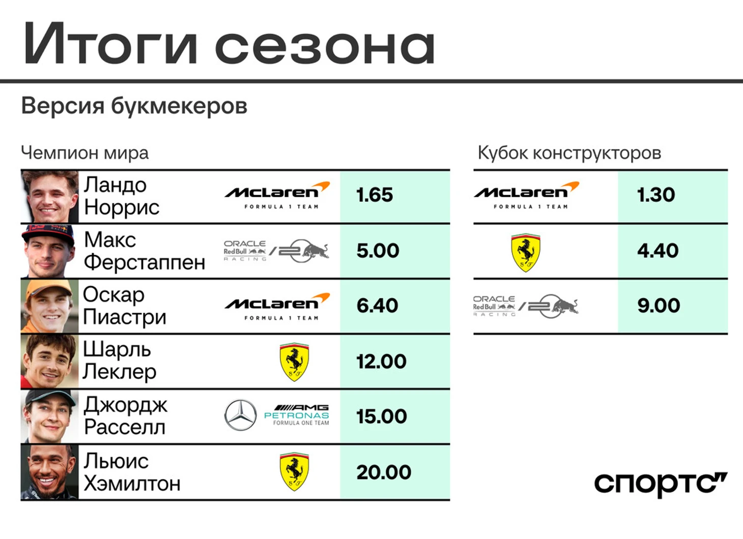 Перед Гран-при Австралии в списке фаворитов на чемпионство было аномально тесно. Букмекеры выделяли сразу пятерых кандидатов: Норриса, Ферстаппена, Леклера, Хэмилтона и Пиастри.