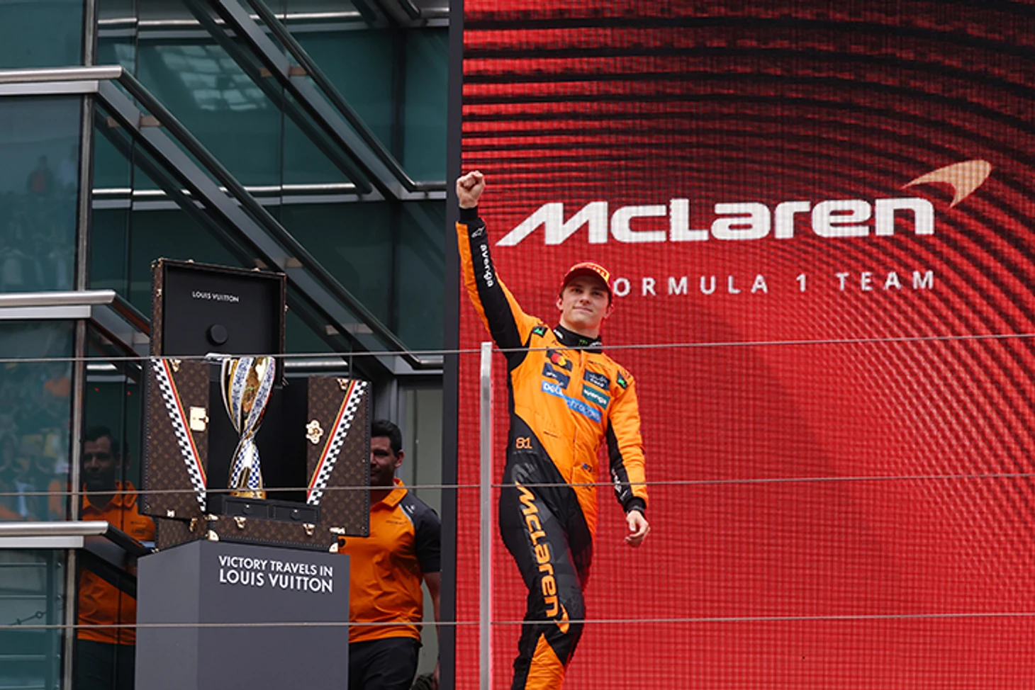 ● Пиастри мастерски реализовал поул, а Норрис все-таки дотянул до финиша на втором, оформив дубль «Макларена». Расселл не успел его нагнать! Ферстаппен же минимизировал неудачный уик-энд – взял 4-е.