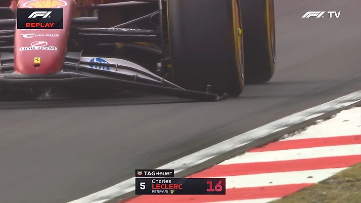 ● Антикрыло Леклера к 10-му кругу просело до асфальта, но Скудерия не выражала беспокойства его кругами.