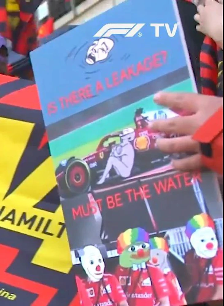 По количеству мемов на трибунах прошедшему этапу нет равных. Вот, например, грустный котик, который так и не смог смириться с переходом Карлоса Сайнса в «Уильямс» и теперь носит две кепочки в поддержку старого состава «Феррари».