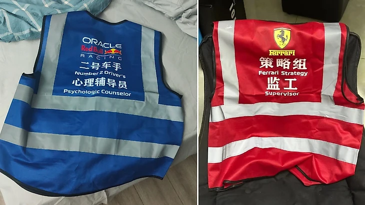 Еще одной отличительной чертой для образов болельщиков на Гран-при Китая стали два вида жилетов: психологический консультант для второго пилота «Ред Булл» и инспектор по надзору за стратегией «Феррари».