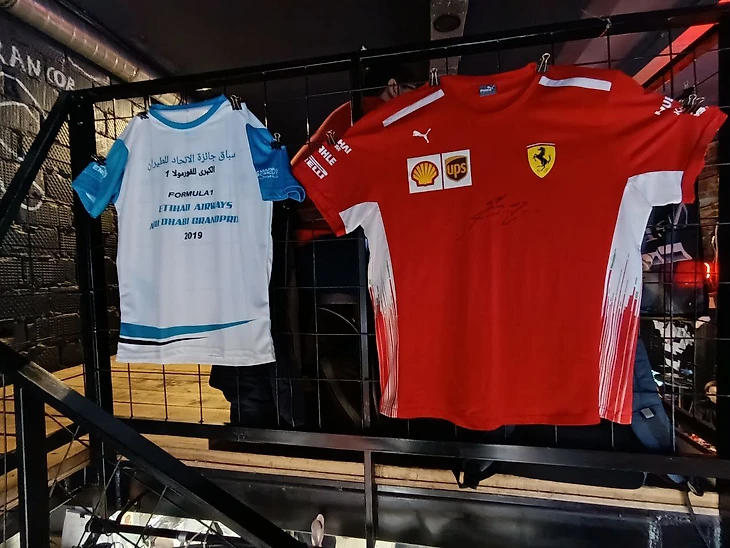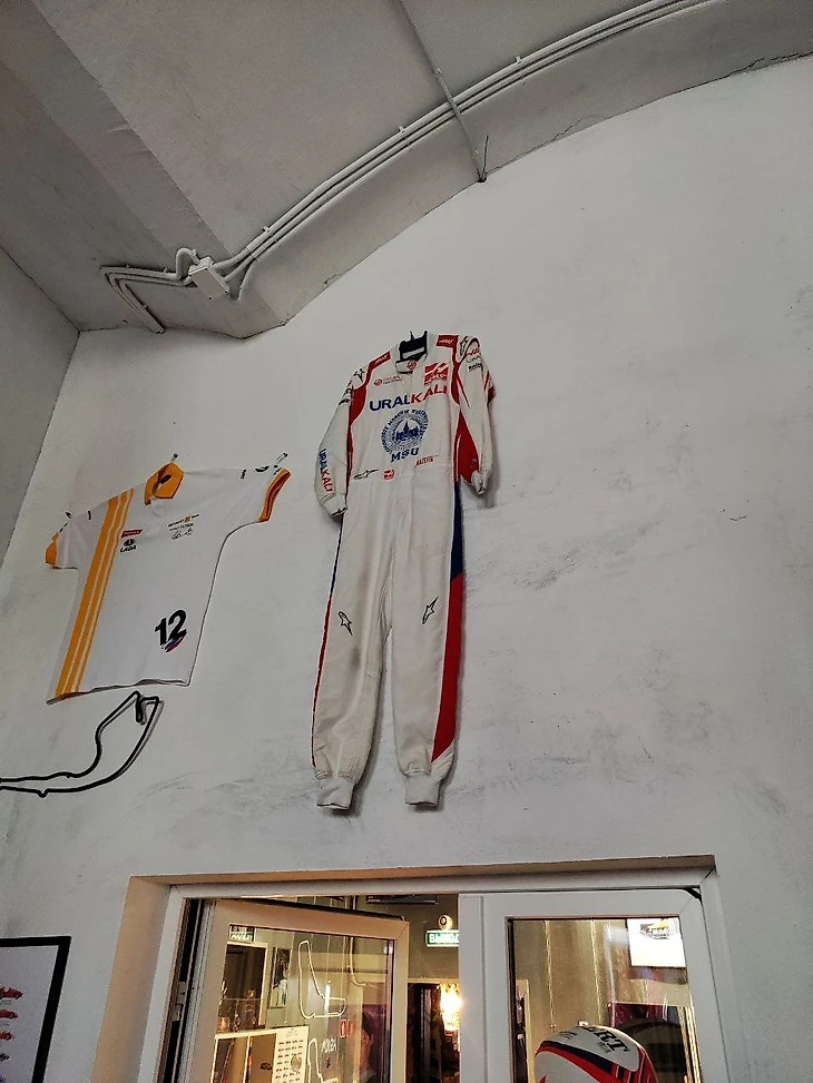 Гоночные атрибуты не только в отдельной зоне – они везде. Есть футболки с автографами.