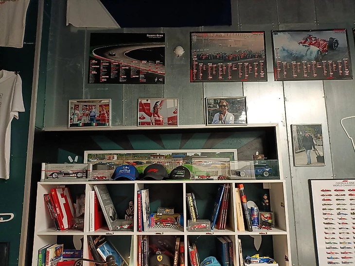 Потому что там находится личная коллекция Алексея Попова – книги про «Формулу-1», которые любой может снять с полок и почитать, сувениры, искусство.