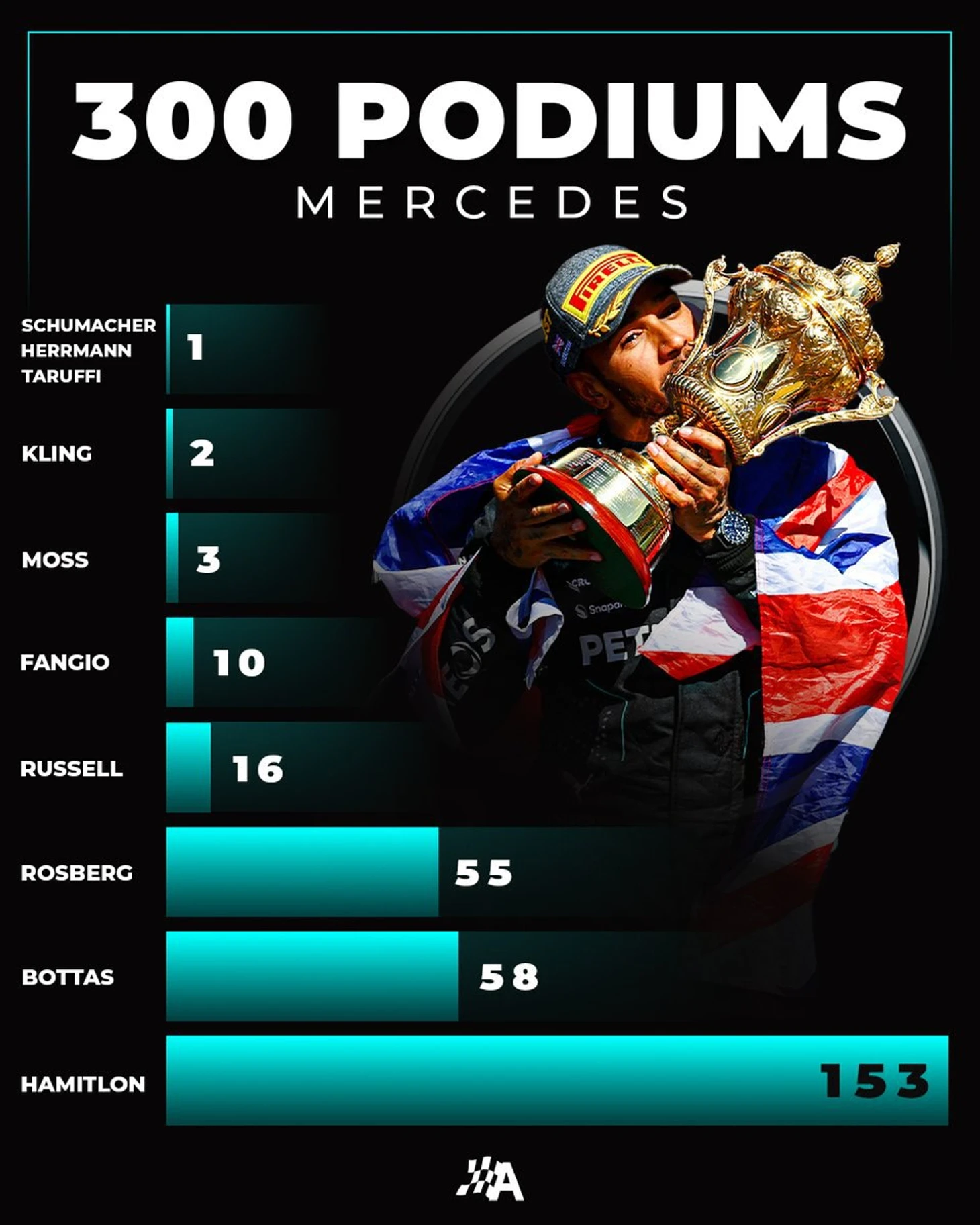🍾 Благодаря подиуму Джорджа Рассела, Мерседес заработали уже свой - Трёхсотый! Подиум в Формуле-1.