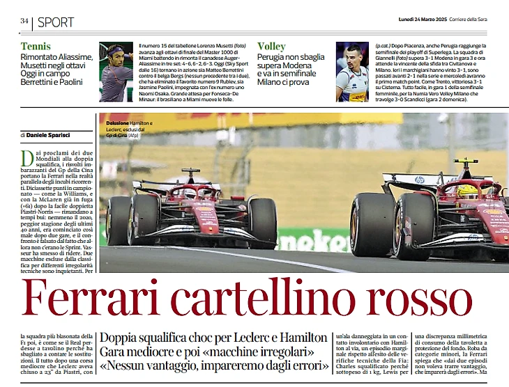 ● Corriere della Sera заявила, что дисквалификация «Феррари» – это «позор» и «выступление, за которое должно быть стыдно».
