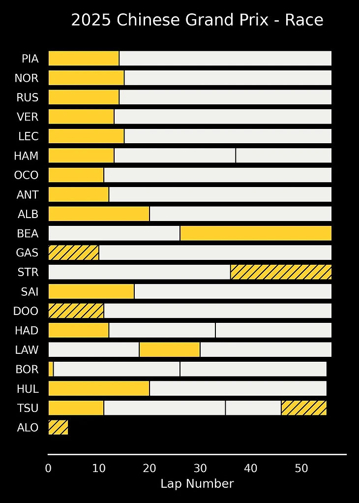 Авто взвешивают с шинами, но после слива пробы топлива в 1 литр. Как и в случае с Расселлом, Леклер проехал длинный отрезок на одном комплекте. В случае монегаска − «харде». Этот отрезок был меньше, чем у Ферстаппена, Расселла и Пиастри, но видимо, износ резины у №16 был куда выше.