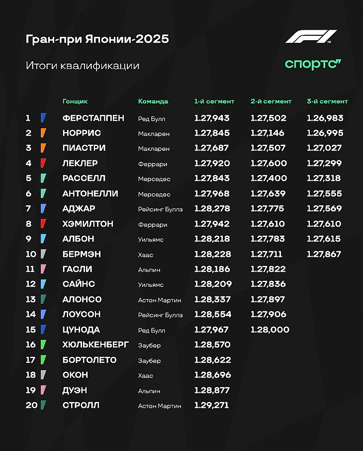 - Спасибо, что были с нами - и увидимся завтра. Старт Гран-при Японии - в 8:00 по московскому времени.