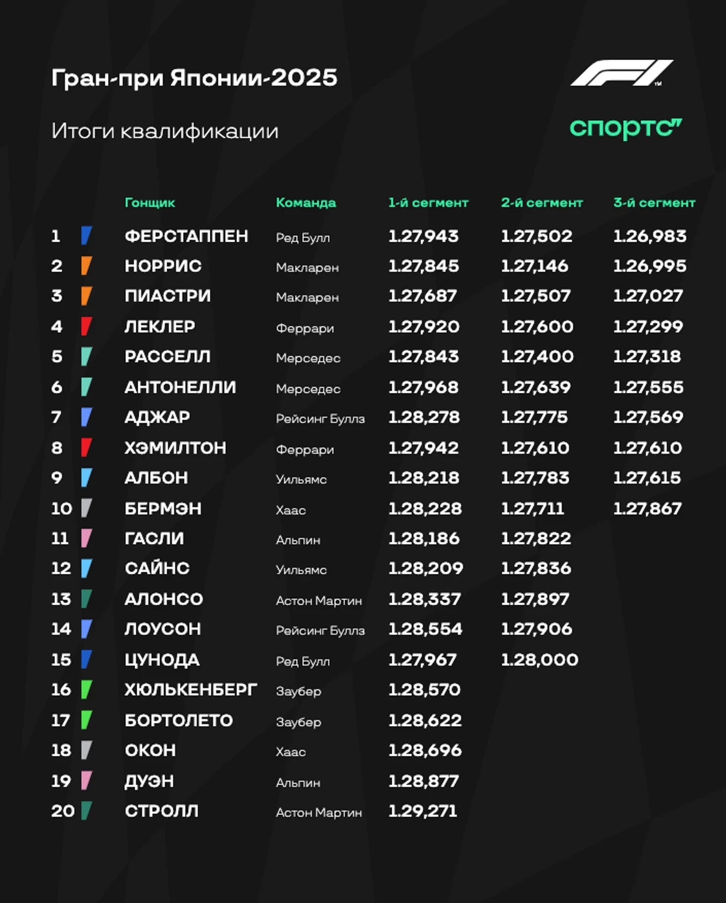 И здесь равных Максу Ферстаппену не нашлось: Оскар Пиастри не взял первый сектор, а Ландо Норрис упустил последний: