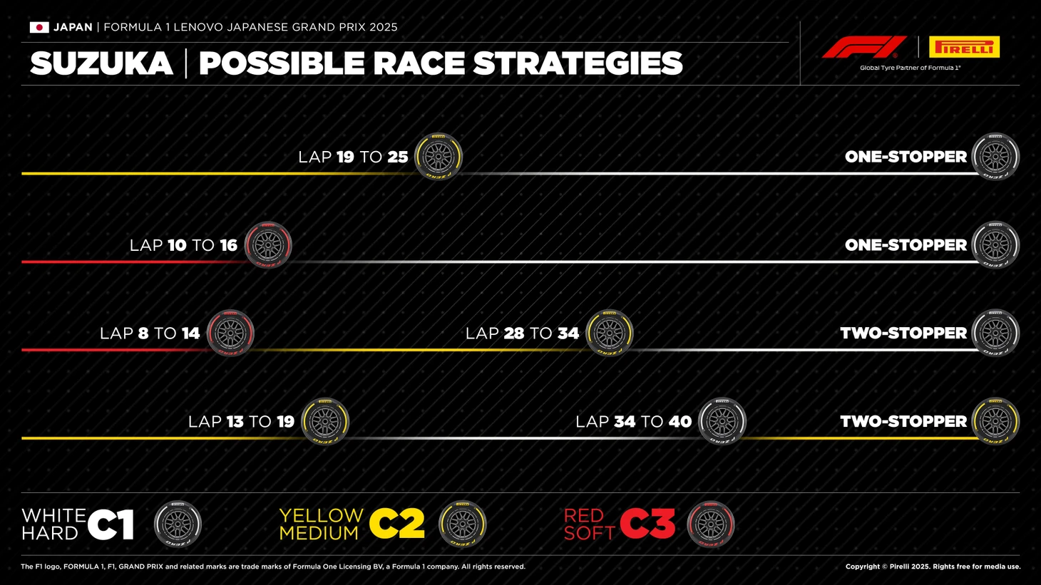 Однако на случай все же сухой гонки «Пирелли» рассчитала потенциальные стратегии – и для одной остановки, и для двух: