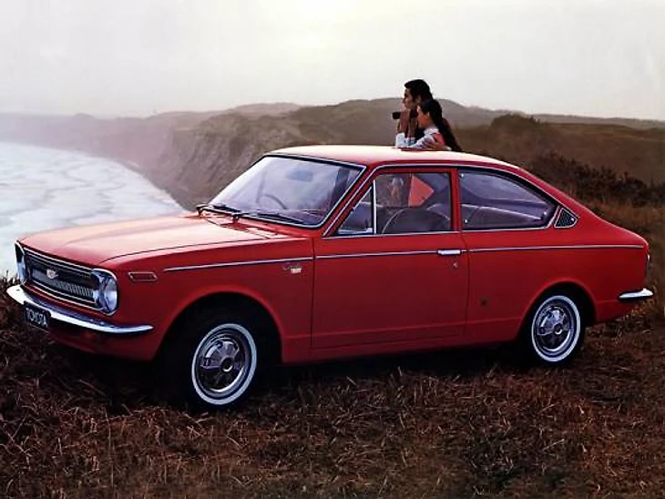 Машина дебютировала как двухдверный седан с 1.1-литровым двигателем на 60 лошадиных сил. Позже вышли версии с 1.2-литровым мотором, а также купе и универсал. Задний привод и механическая коробка делали её манёвренной. При весе всего 720 кг она легко передвигалась по узким японским дорогам. Цена стартовала от 432,000 йен, что равнялось примерно $1,700 по курсу 1966 года — дешевле многих конкурентов. Внешне Corolla выглядела скромно, но стильно: округлые формы, немного хрома, длина 3.85 метра — всё по моде 60-х. Внутри — минимум излишеств, но максимум практичности.