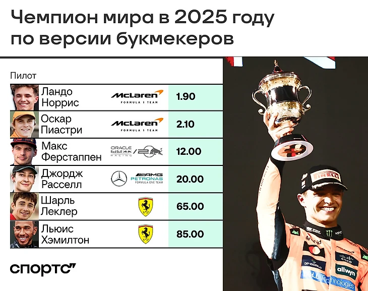 Пока ключевая интрига – схватка внутри «Макларена», она отражается и на коэффициентах. Перед сезоном Норрис шел главным фаворитом, Пиастри – только пятым. Но с таким темпом австралиец уже не выглядит аутсайдером в гонке за чемпионство.