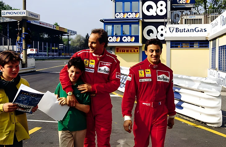 В день гонки погода изменилась, и воскресное утро встретило всех непрекращающимся дождем, однако это не отпугнуло болельщиков, и склоны вокруг трассы в Имоле с рассвета были заполнены радостными поклонниками «Феррари». На стартовой решетке команды должны были решить, использовать ли слики или дождевые шины. Шесть пилотов выбрали дождевую резину: первые пятеро на стартовой решетке и Рубенс Баррикелло с десятой позиции. К концу первого круга пилоты на дождевых шинах занимали первые шесть мест, а все остальные ждали, пока трасса высохнет. Пилоты на дождевых шинах выигрывали у своих соперников около пяти секунд на круге. Затем они начали заезжать на пит-стопы. Гонка для Шумахера продлилась всего полкруга после его пит-стопа, потому что на подъеме к верхней части трассы «Бенеттон» внезапно резко бросило вправо, и болид оказался значительно поврежден. Это выглядело как ошибка пилота очень чувствительной машины на сликах в сырых условиях, но немец заявил о проблеме с болидом.