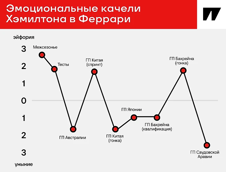 Переживать Хэмилтону стоило бы, если бы уже после первых неудач в «Феррари» включили режим всеобщей атаки на гонщика, как в поздние дни Себастьяна Феттеля в Маранелло. Тогда возникало ощущение, что итальянцы уже не хотят видеть немца, но терпят только из-за действующего контракта. Доходило до того, что в ответ на критику болида прилетало самому четырехкратному, в том числе с самого верха − от Пьеро Феррари.