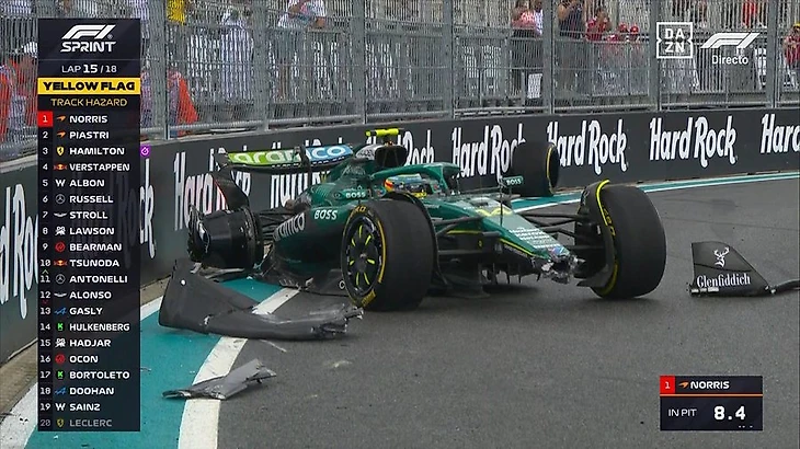 Фернандо разбил машину. Желтые флаги. Норрис заехал в боксы и остался лидером гонки.