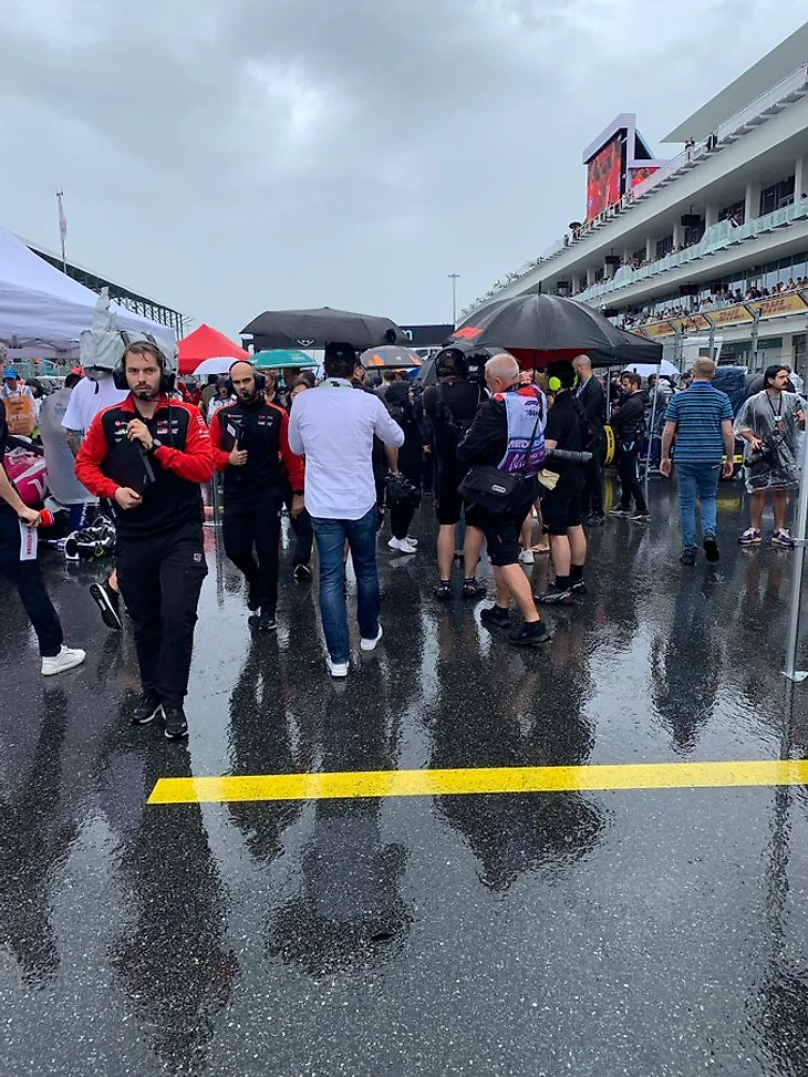 Мысли лидера чемпионата перед стартом спринта: «На данный момент трасса весьма влажная. Как мы видели, есть несколько луж, так что будет весьма интересно. Пока похоже на спринт на выживание».