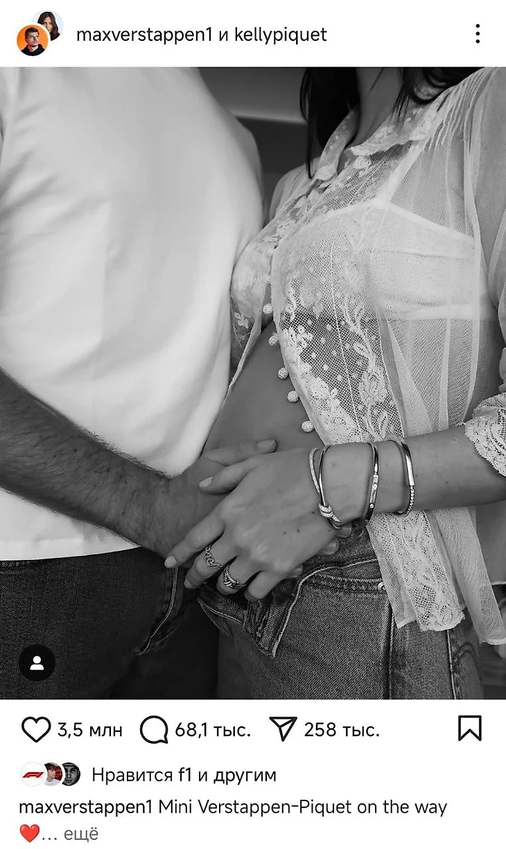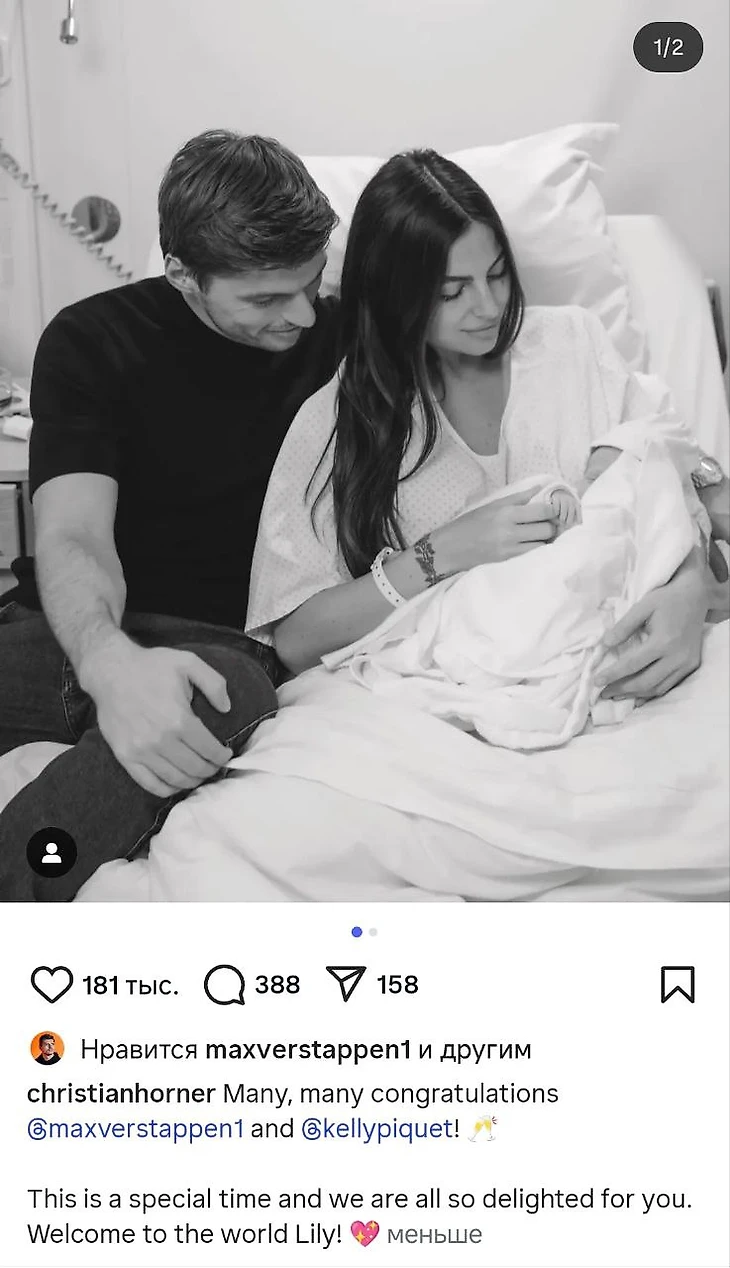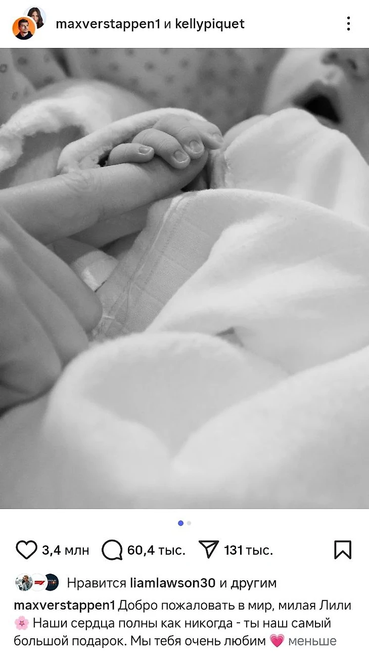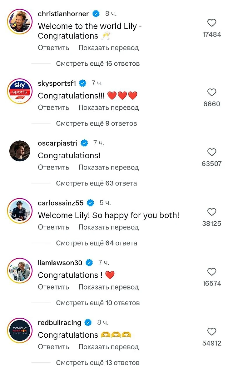 Под постом Макса Ферстаппена, в котором он объявил о рождении дочери, фестиваль поздравлений.