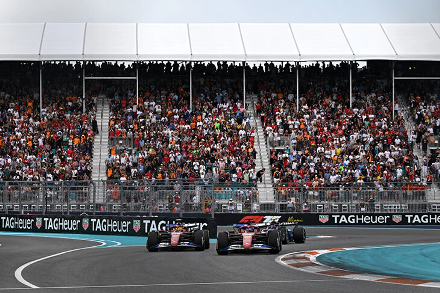 Битва бывших напарников – Леклера и Сайнса – вышла зрелищной, и когда красная и синяя машины чуть не вывезли друг друга за пределы трассы, Хэмилтон едва не проскочил мимо. Если бы ему это удалось, ход гонки наверняка изменился и людям на пит-уолл не пришлось бы решать тяжелейшие стратегические задачи, но нет – Шарль остался впереди Хэмилтона.