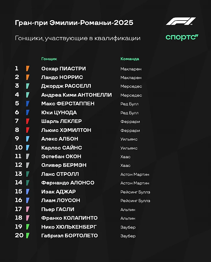 17 мая в Имоле состоится квалификация к седьмому этапу «Формулы-1» сезона-2025, Гран-при Эмилии-Романьи.