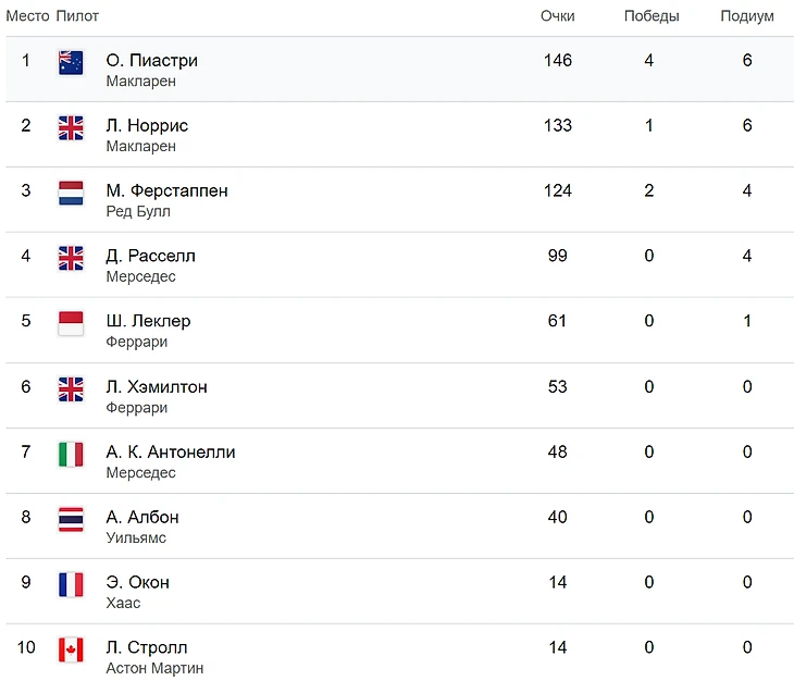 Ферстаппен одержал победу, Норрис финишировал вторым, а Пиастри третьим, обеспечив двойной подиум для «Макларен». Хэмилтон стал четвертым в своей первой итальянской гонке за рулем «Феррари», Албон пятым, а Леклер шестым. Расселл принес очки «Мерседес», финишировав седьмым. Сайнс занял восьмое место для «Уильямс». Айзек Хаджар и Юки Цунода замкнули очковую зону. Алонсо на «Астон Мартин» остался без очков.