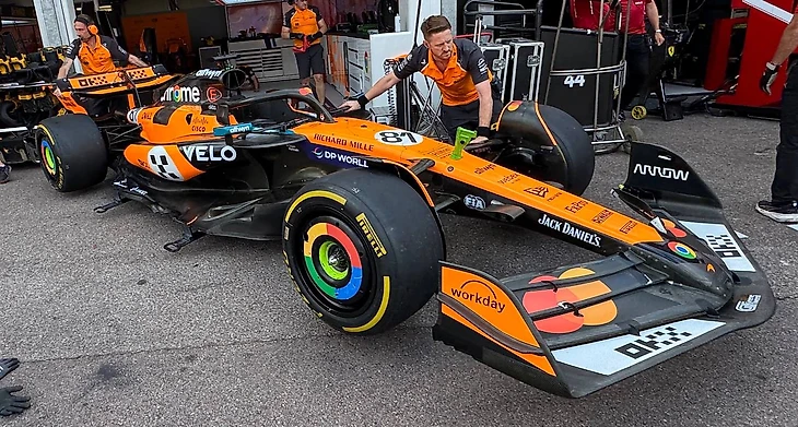 * Макларен привезли новую спецраскраску — классическая папайя в честь первого Макларена, на котором была одержана первая победа в Формуле-1.