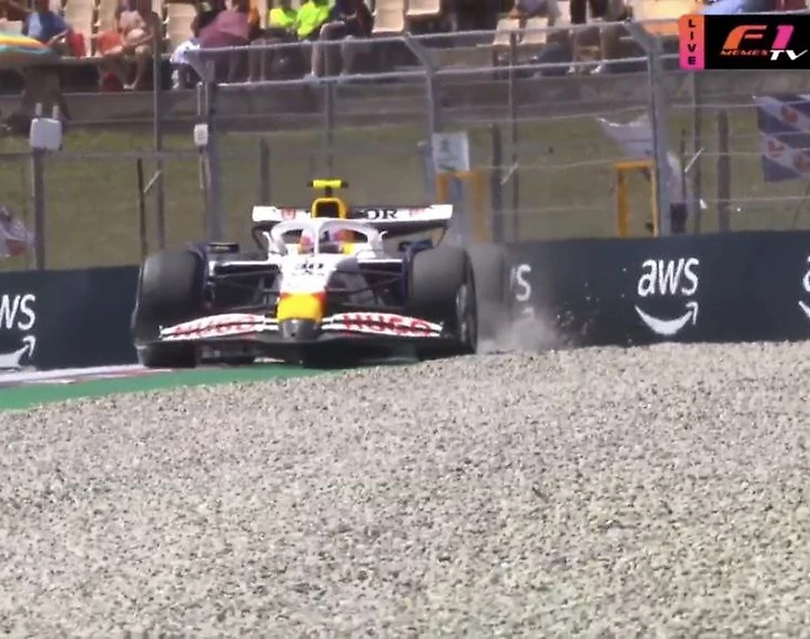 * Лоусон прихватил гравия и бросил быстрый круг. На том же повороте цепляют гравий Саинс и Ферстаппен;