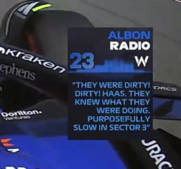 * Албон не проходит в третий сегмент, обвиняя во всем медленного едущего впереди Олли, хотя тот был вообще на прогревочном круге.