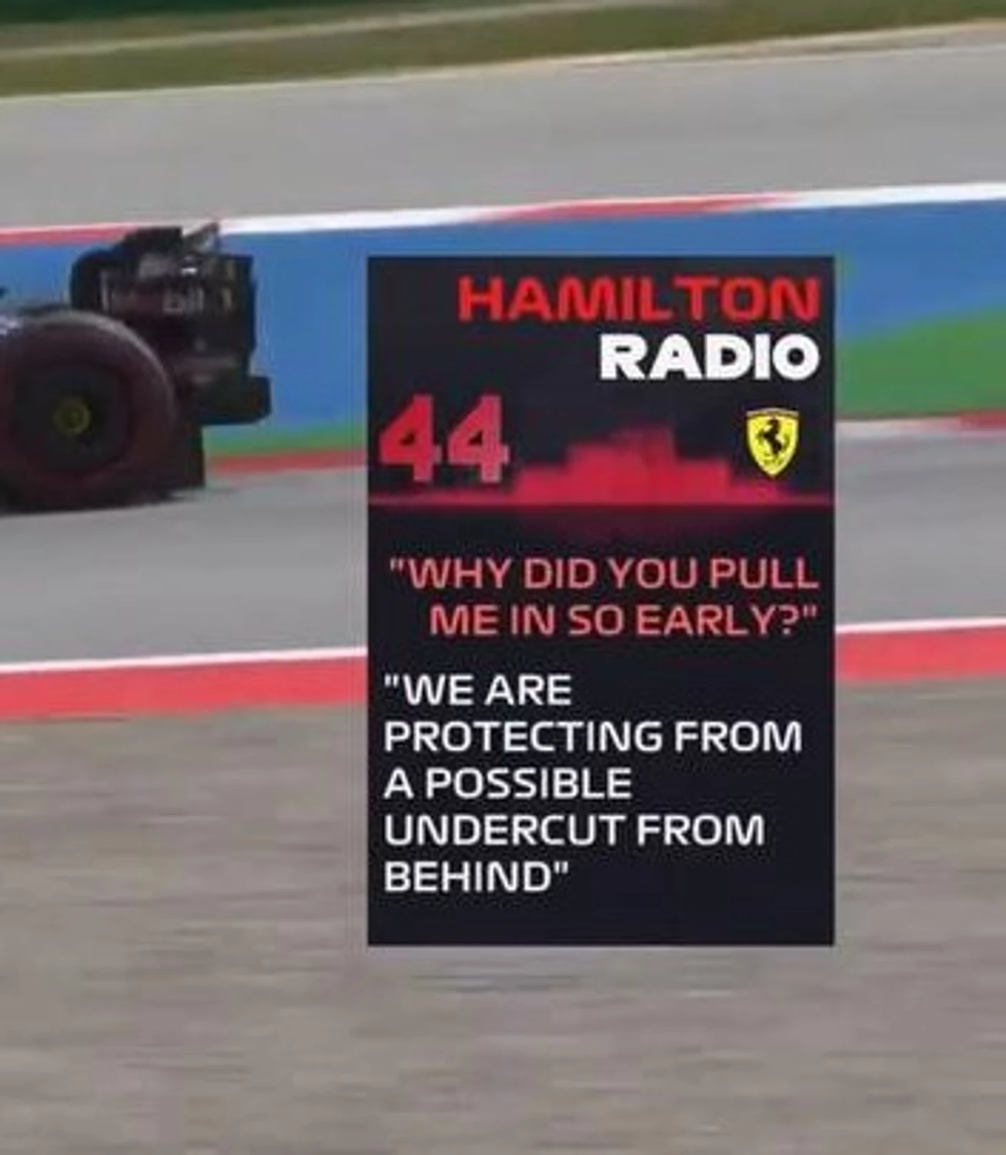 * Льюис негодует, что его слишком рано позвали на пит-лейн. Его собственная команда не верит в него и «пытается уберечь от андерката»: