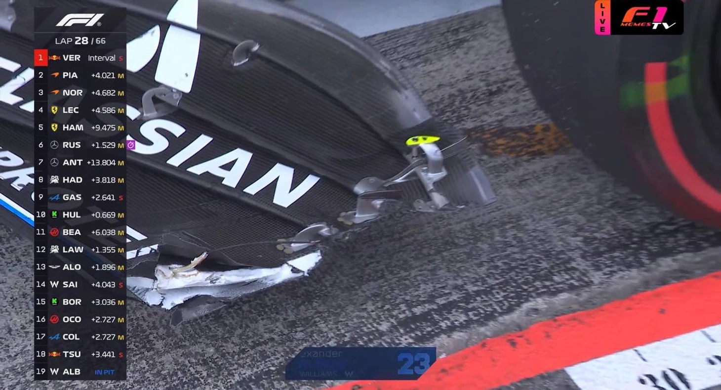 Увы, у Вильямса закончились запасные крылья, и на этом гонка для Албона завершается.