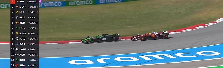 * Макс обошел Ландо на первом круге (реакция на старте была лучше на одну десятую в сравнении с Ландо, что и дало ему преимущество), но с Пиастри этот номер не прокатил - Оскар уверенно держал лидерство;