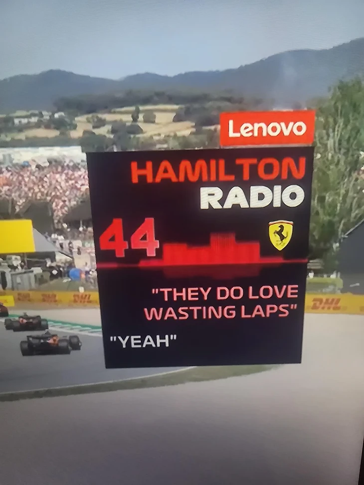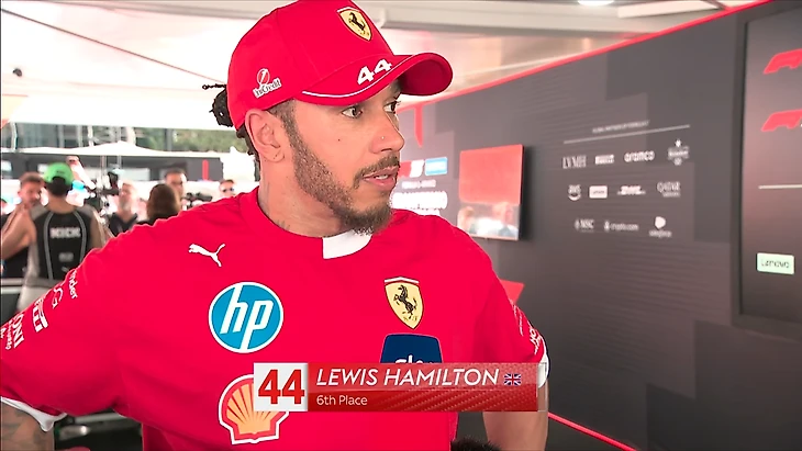 Льюис Хэмилтон, стартовавший пятым, оказался в непростой ситуации: почти всю гонку ехал шестым, уступая «Макларенам», партнеру по «Феррари», Расселлу и Ферстаппену.