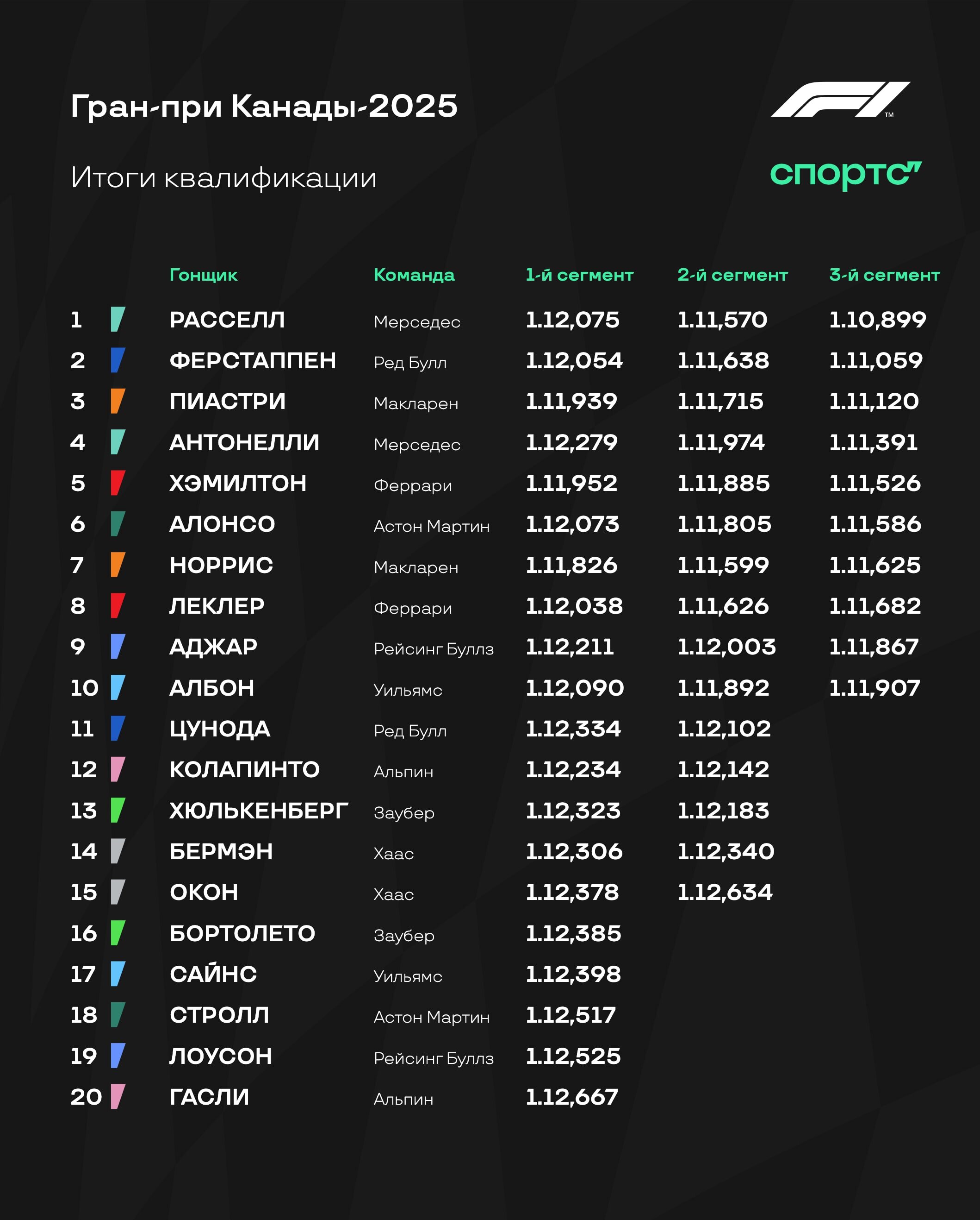 А в 2025-м все вышло примерно так же: в первой попытке пелотон уложился в 0,8 секунды, а в финальной первое место вновь разыграли Расселл и Ферстаппен!