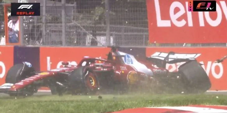 * Леклер перетормаживает и влетает в стену: