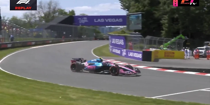 * Стролл разбивает машину, выйдя слишком широко и быстро из поворота: