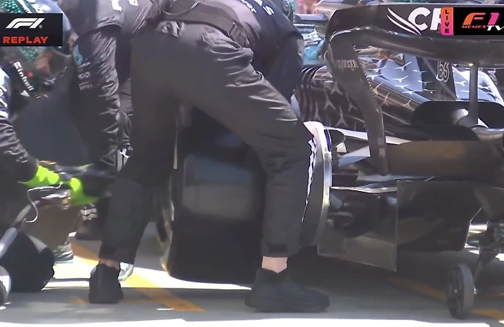 * Мерседес подпортили пит-стоп Расселу — заминка с задним левым колесом: