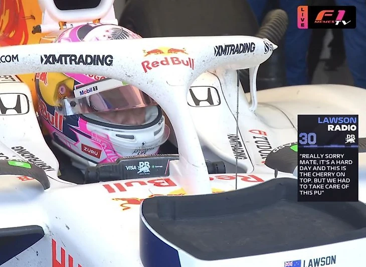 * Лоусона просят вернуться в боксы из-за проблем с силовой установкой — на этом его гонка все: