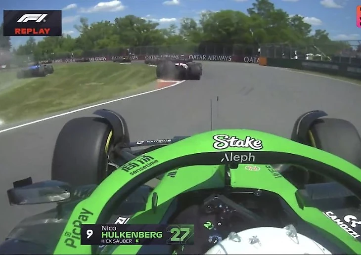 * Албон вылетает на газон, что дает возможность Хаджару отыграть одну позицию, а Хюлькенбергу целых две: