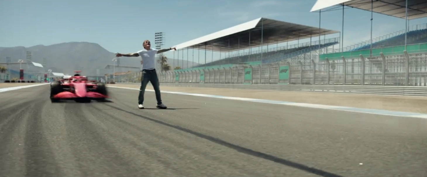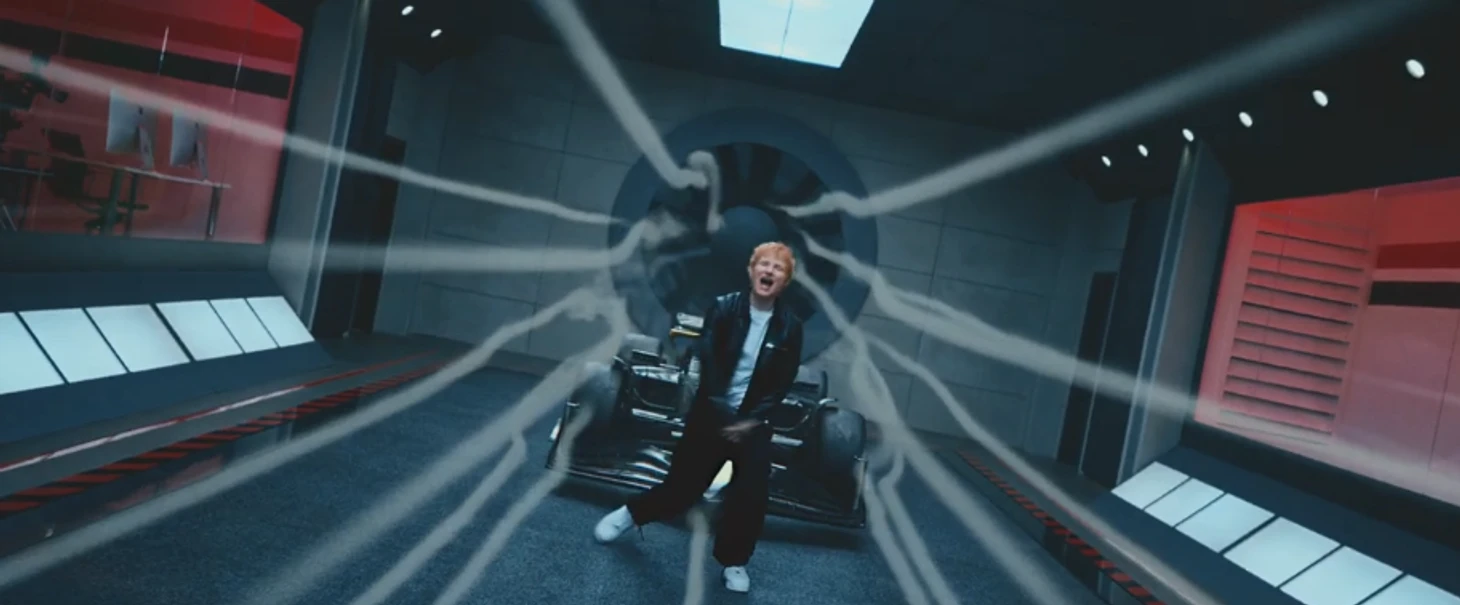 По сюжету на трассу прилетает брендированный вертолет APXGP, из которого вылетают детали, собирающиеся в болид. После будет гонка, а Ширан продолжит петь, просто стоя посреди трассы. Никаких желтых или красных флагов – объезжайте.