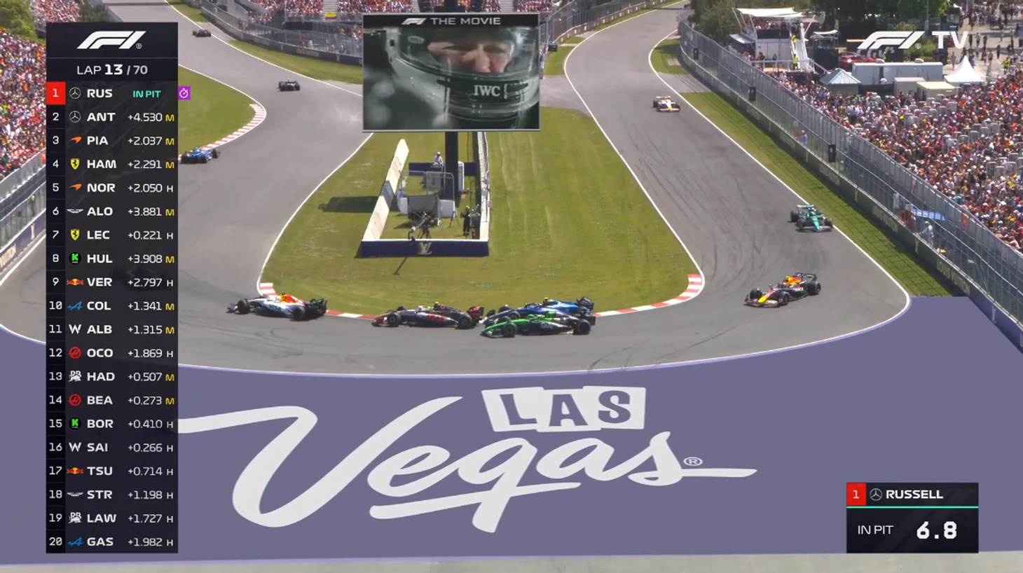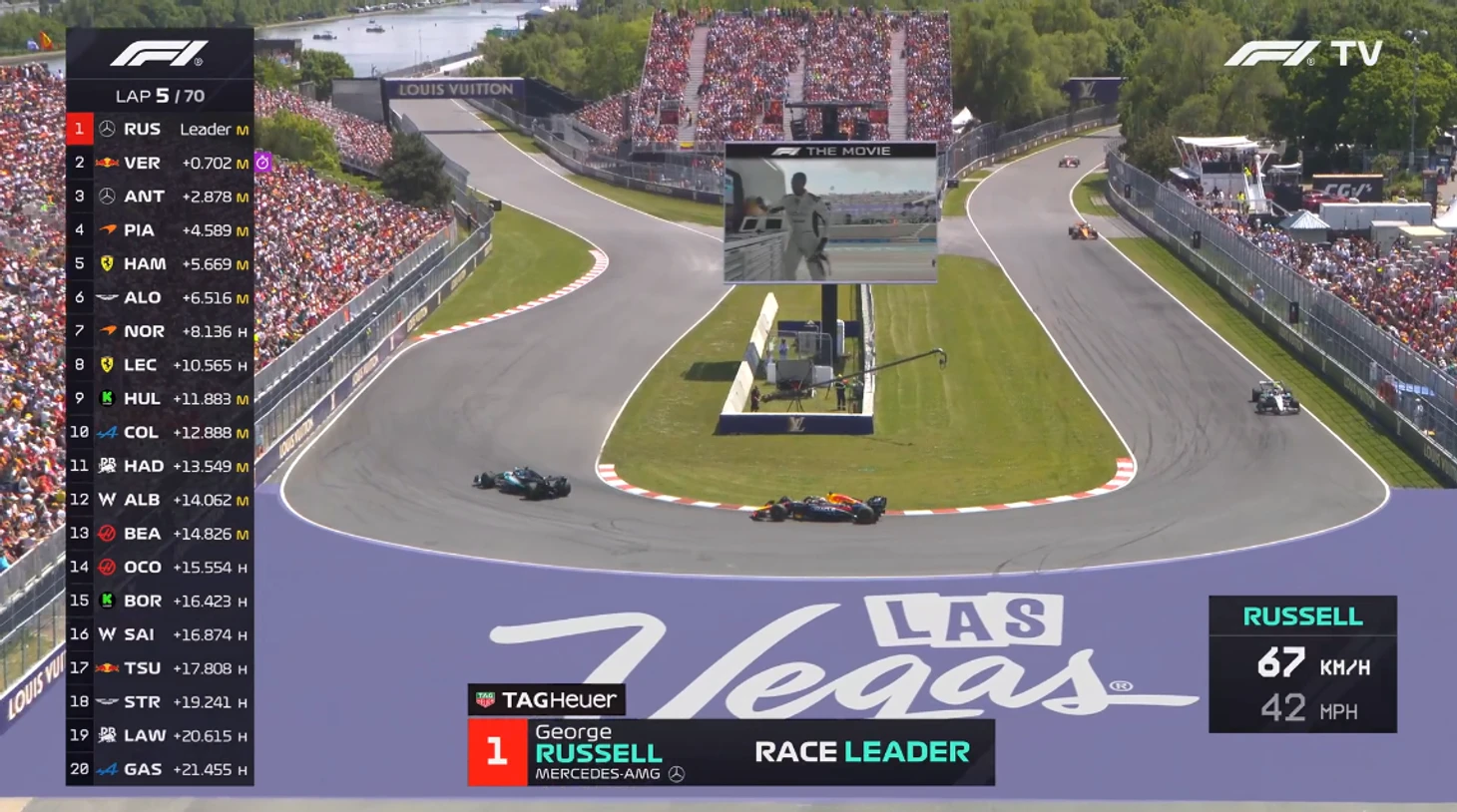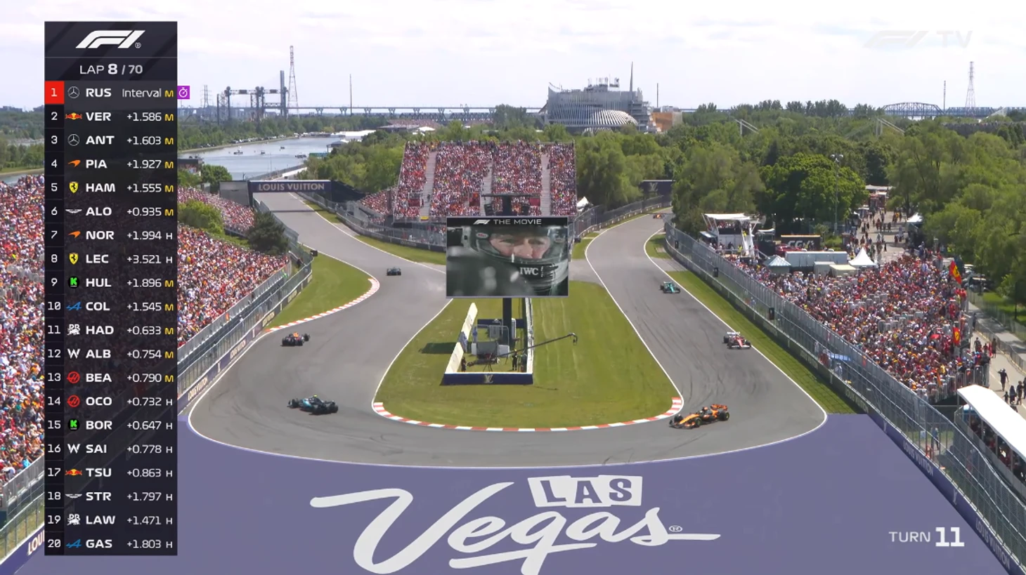 По ходу Гран-при Канады 2025 года внимательные фанаты заметили одну вещь, которая их напрягла – реклама фильма «Ф-1» на билборде, установленном в 10-11 поворотах. Первый раз ее вывели на пятом круге.