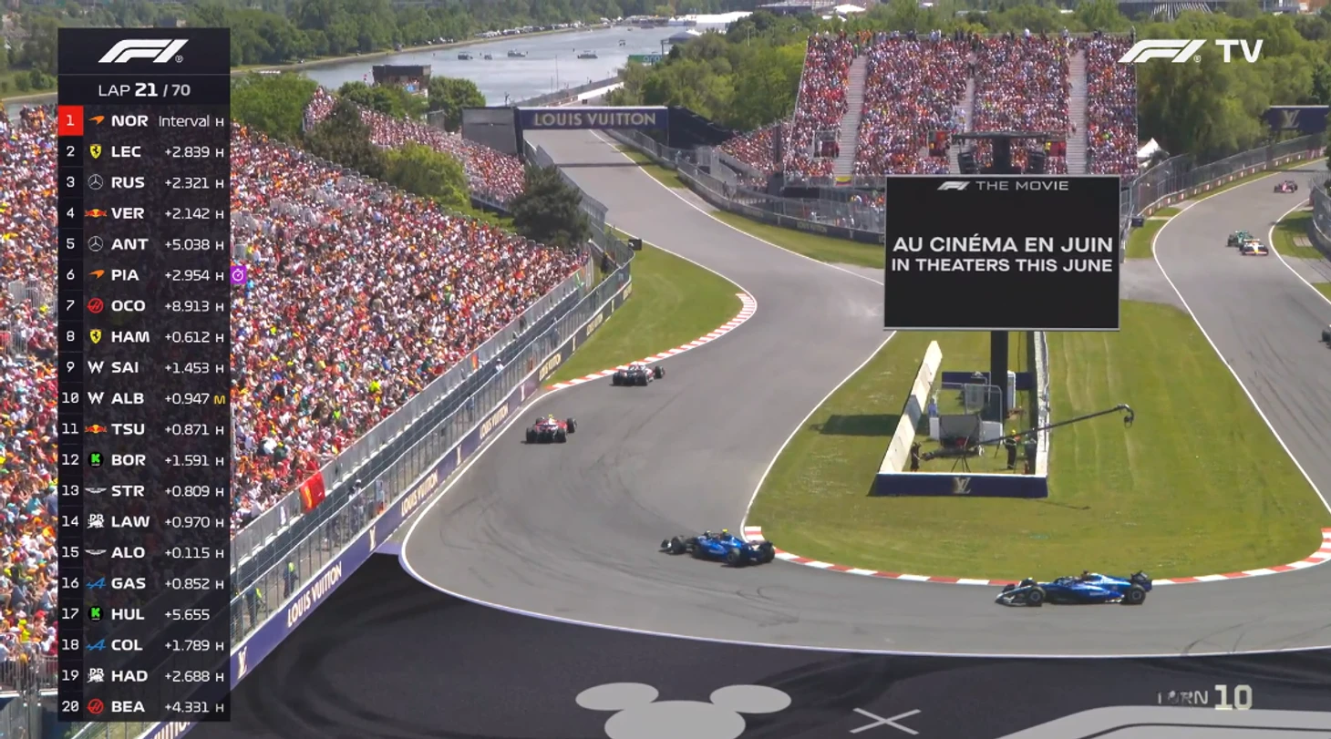 Реклама на билбордах во время Гран-при Канады на протяжении всей гонки