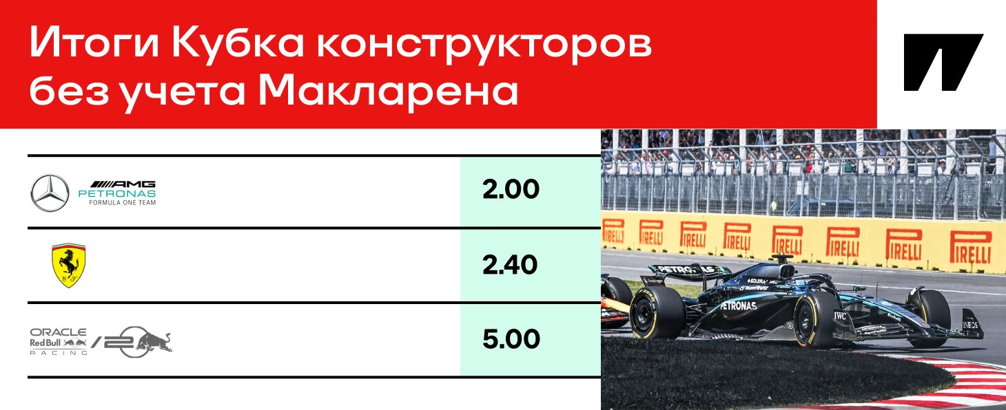 Букмекеры нашли способ взбодрить гонку в Кубке конструкторов. Линия уже давно выглядела убитой с коэффициентом 1.01 на победу «Макларена». Аналитики признали победу за действующим чемпионом и просто удалили команду из линии – так стало веселее.